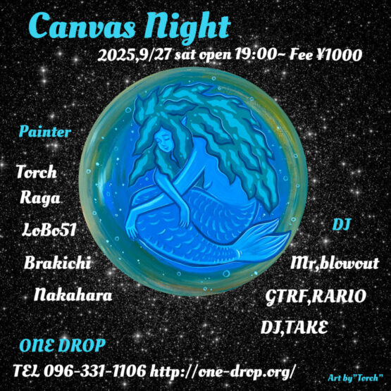 熊本在住で国内外で活躍するペインターを中心に毎月最終日曜日の夜、ライブペインティングを行っています